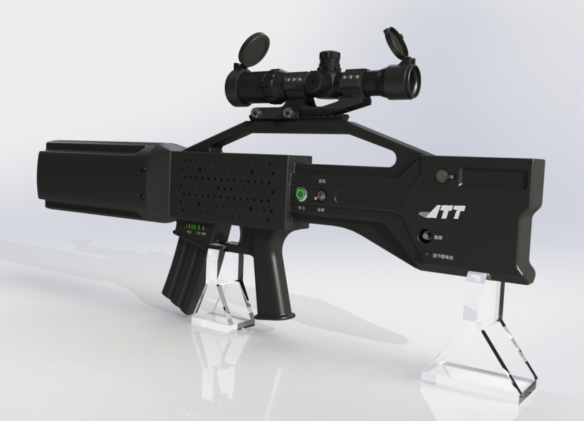 被“擊落”無人機沒有因此被炸毀,只是緩緩降落在了地上。這種武器的原理是發射處于1.5GHz、2.4GHz到5.8GHz之間電磁干擾波,中斷遙控設備和無人機之間的聯系。因為大部分無人機遙控器也是處于這個頻率段之間。