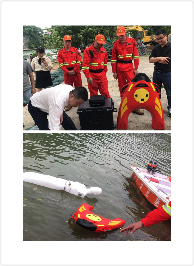 自帶人體檢測模塊,落水者若脫離機器人,機器人自動停止滑行,等待落水者再次抓住機器人 |