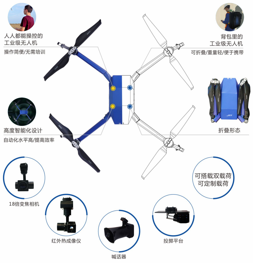深圳市智璟科技有限公司(以下簡稱“JTT”)隸屬于深圳市城投集團(tuán),是一家專注于工業(yè)級無人機(jī)研發(fā)、生產(chǎn)、銷售、培訓(xùn)及服務(wù)于一體的國家級高新科技企業(yè)。JTT一直秉承“適應(yīng)復(fù)雜行業(yè)應(yīng)用環(huán)境,提高應(yīng)用場景工作效率”宗旨,保持技術(shù)的領(lǐng)先性,提供安全穩(wěn)定無人機(jī)系統(tǒng)方案和產(chǎn)品,切實解決用戶的痛點。公司自主研制的多旋翼工業(yè)級無人機(jī)廣泛應(yīng)用于行業(yè)規(guī)模定制、公共安全、海上救援以及環(huán)保監(jiān)測等領(lǐng)域,并不斷融入新的行業(yè)應(yīng)用。