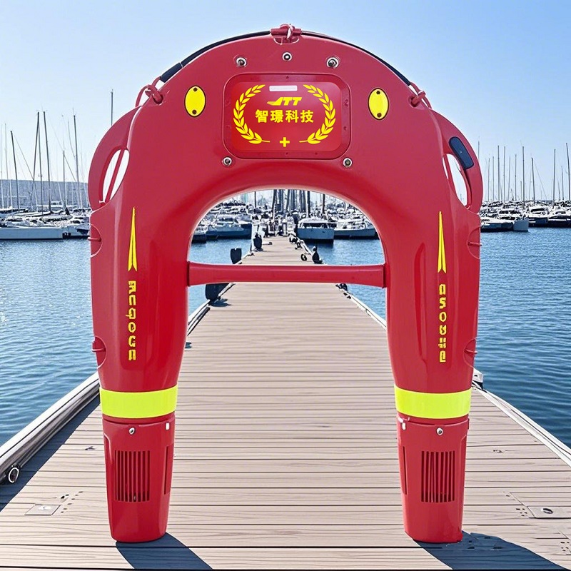 智能護航,全程可視: 艇身內嵌的高清攝像機(可升級紅外雙光),將救援現場畫面通過10公里超遠圖傳實時回傳至遙控器屏幕,讓指揮中心清晰掌握現場狀況,實現精準決策。同樣具備本機控制按鍵,確保在極端情況下落水者能自主操控返航。
